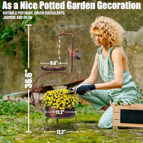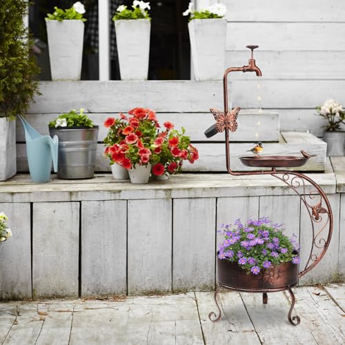 Solar-Powered Lamp:This bird bath is crowned with vintage faucet featuring solar filaments that mimic the gentle flow of water. During the day, it soaks up the sun’s rays, and at night, it casts a soft, enchanting glow. This unique lamp not only enhances the garden’s ambiance but also attracts birds around the clock.