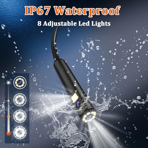 IP67 Waterproof and Flashlight Function: This borescope has IP67-level waterproof performance and can be used in harsh weather and humid environments. It is a must-have tool for mechanics, maintenance personnel, and plumbers. The Ferdiiz endoscope is equipped with a dedicated light source (the button on the upper left is the switch), which helps maintain visibility in dark environments.