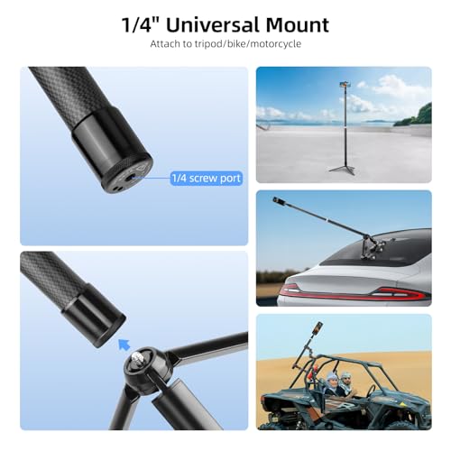 Portable & Extendable – Compact and highly portable when fully retracted, making it ideal for travel and on-the-go use. This extendable pole expands from 45cm to an impressive 3 meters to suit various shooting needs. Includes a 1/4" screw hole at the base for tripod mounting.