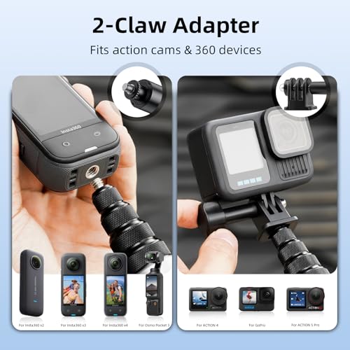 Universal Compatibility – Designed for Insta 360 camera models (including Insta 360 X5, X4, X3, X2, X, etc.) and panoramic camera. Includes an action camera mount compatible with DJI Action 5 Pro/4/3, Pocket 3/2, Insta 360 ACE Pro, and Go Pro Hero 13/12/11/10.