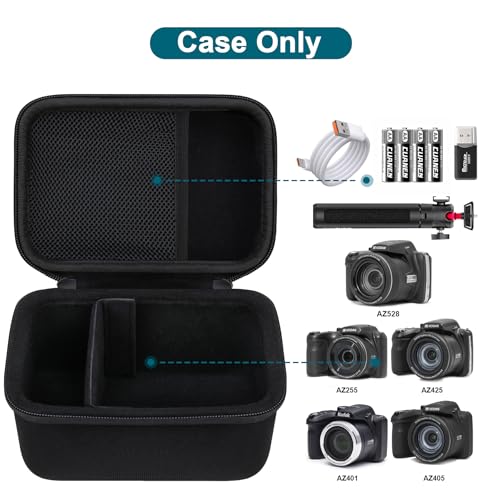 - 【Perfect Fit】 CASE ONLY! (Digital camera and accessories are not included) AZ528 camera storage bag compatible with KODAK PIXPRO AZ528/AZ405/AZ425/AZ401/AZ255 digital camera. Mesh Pocket fits USB cable, batteries and other accessories.