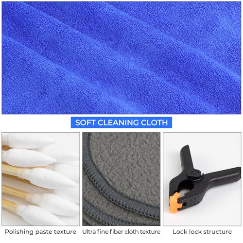 - 【FUNCTIONAL FEATUAL 】EVA foam+acrylic plate pressure setting system (4 sets of pressure clamps), 4 hours to correct slight bending (success rate ≥ 98%).The sponge head applicator accurately applies polishing paste to restore the original glossiness of the glitter film.