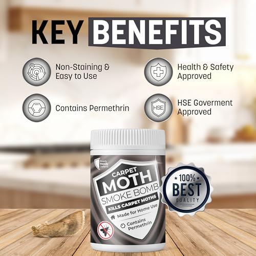 INTEGRAL PART OF CARPET MOTH TREATMENT – When dealing with a Carpet moth infestation, these Carpet Moth Smoke Bombs are an essential component of an effective treatment plan, working alongside other carpet moth treatment methods to eliminate moths in the airspace.