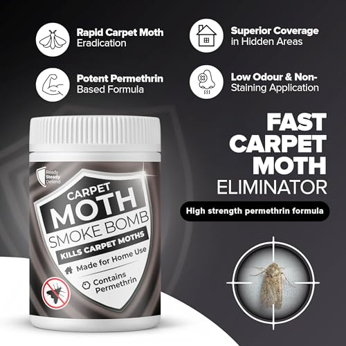 MAXIMUM STRENGTH FOR EFFECTIVE RESULTS – Ready Steady Defend Carpet Moth Smoke Bombs are the ultimate carpet moth killer, containing a potent 13.25% w/w Permethrin, making them highly effective in rapidly eliminating clothes and carpet moths from your space.