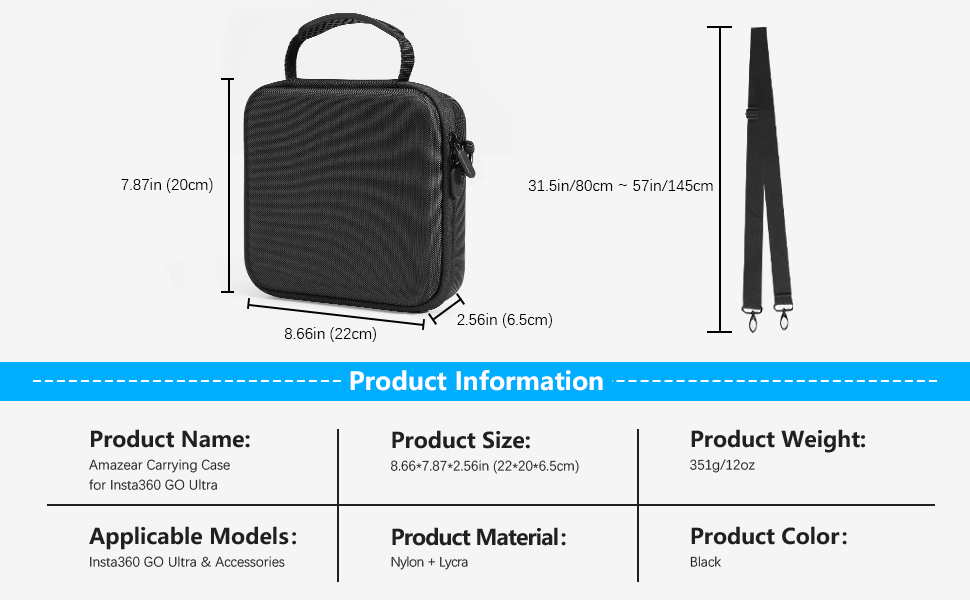- 【Essential Accessory】The Insta 360 Go Ultra carry case bag not only simplifies storage and transportation but also helps maintain the camera in optimal condition. This case is a must-have for anyone looking to preserve their equipment and streamline their creative process.