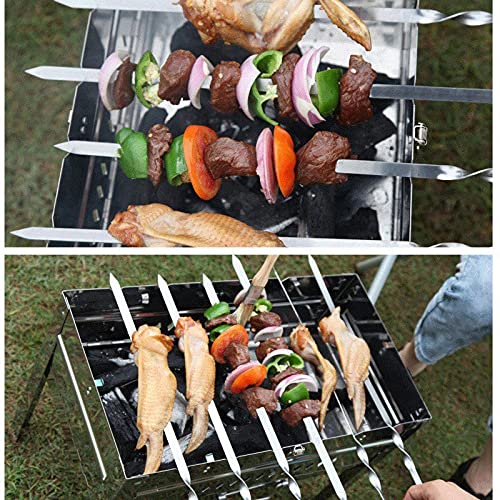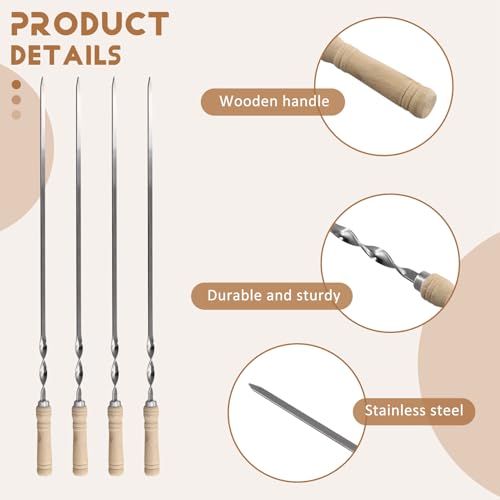 Kabob BBQ Grill Skewers Features: Food grade Stainless, Wooden Handle