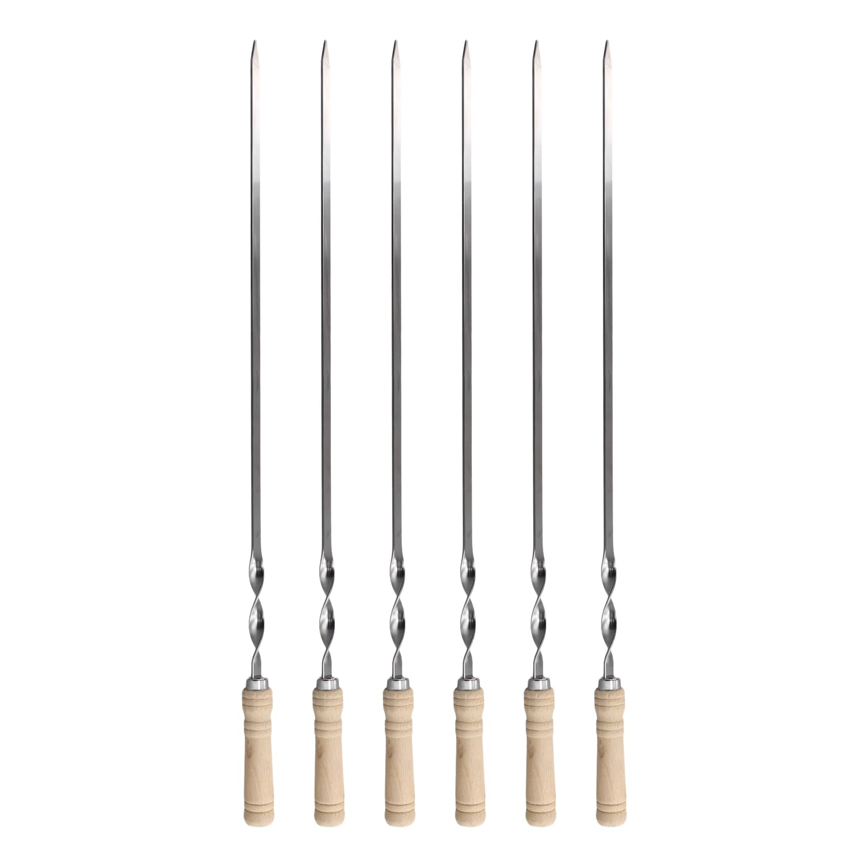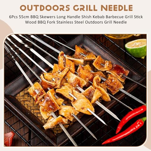 Clickinline 6Pcs 55cm BBQ Skewers Long Handle Shish Kebab Barbecue Grill Stick Wood BBQ Fork Stainless Steel Outdoors Grill Needle