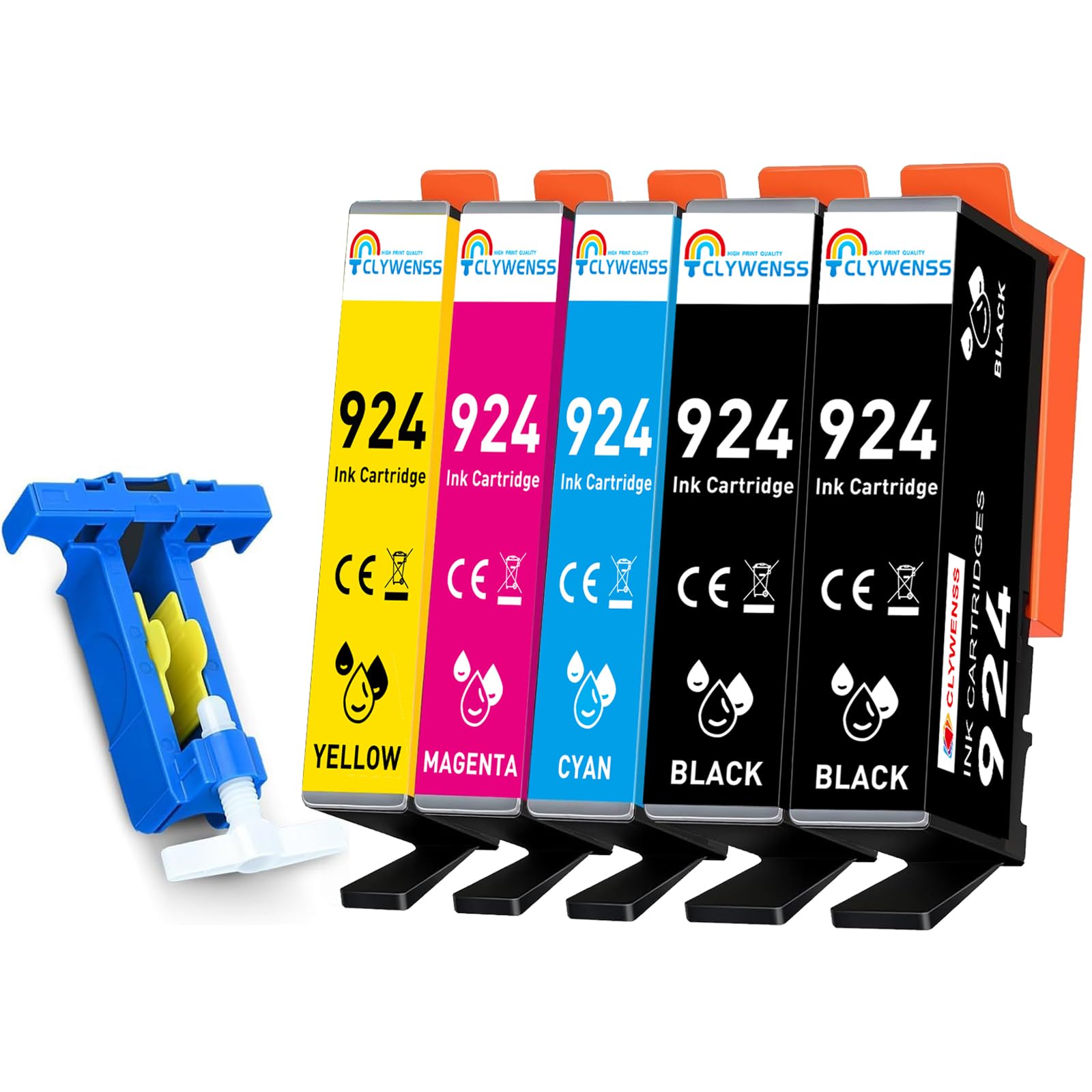 Clywenss 924 Ink Cartridges Compatible with HP 924 for OfficeJet Pro 8122e 8120e 8120 8132e 8124e 8125e 8130e 8134e 8135e 8138e 8139e 8122 8123 8125 8128 8130 8132 8133 8134 8135 (No Chip, 5-Pack)