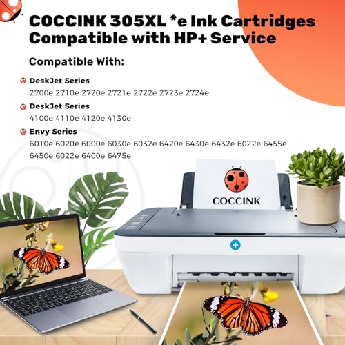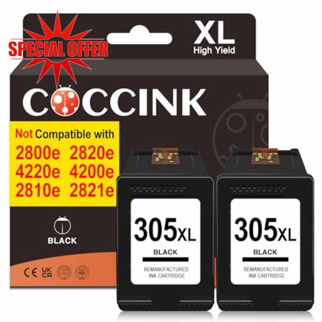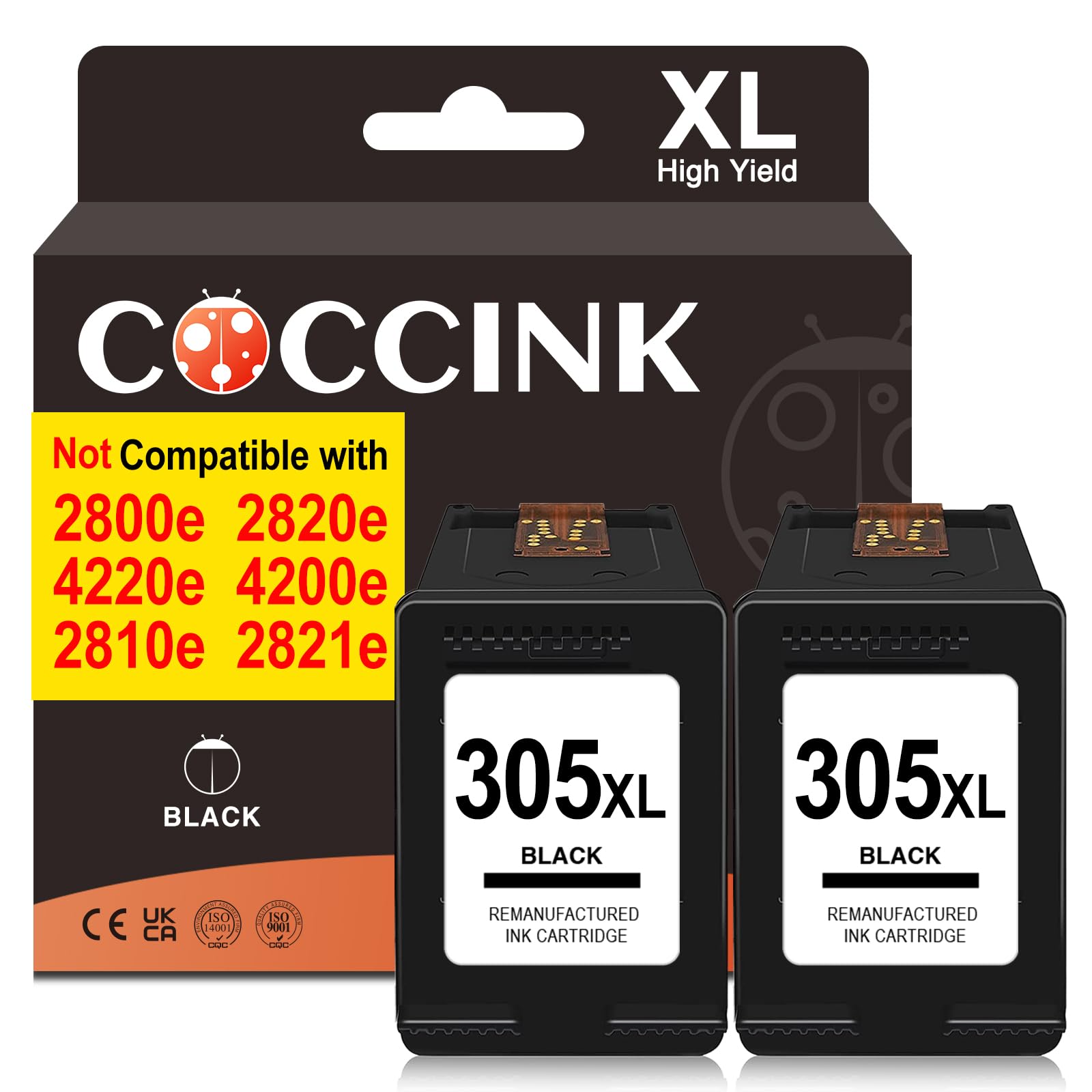COCCINK 305XL Black Ink Cartridges Compatible with HP DeskJet 2700 2710 2720e Deskjet 4100 4130e 4110e Envy 6000 6010e 6020e 6030e Envy 6400 6420 6430 6432 with HP 305 Ink Cartridges 2 Black Pack