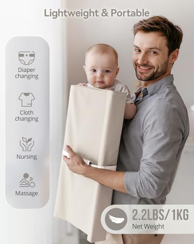 - 【Ergonomic Spine Support】The high-density polyurethane foam core provides optimal cushioning to support your baby’s delicate spine, reducing fussiness during diaper changes. Paired with contoured sides, the diaper changing pad cradles infants securely for comfort and safety