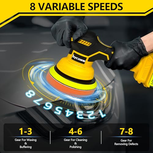 - 【ERGONOMIC DESIGN & LIGHTWEIGHT】— Experience perfect balance of power and comfort with the lightweight and ergonomic design of the byczone mini polisher. Weighing only 2.3 lbs, it's easy to carry and store. The ergonomic rubber handle of the wireless car polisher ensures a secure grip and allows for precise control; perfect for beginners, DIY enthusiasts, or professionals in the auto care industry.