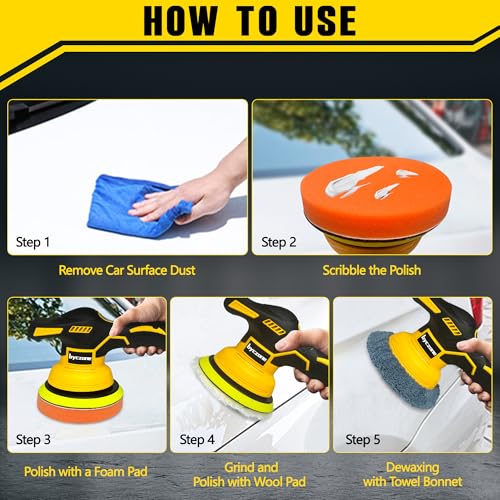 - 【MULTI-PURPOSE】— Our cordless car buffer kit are multipurpose tools ideal for polishing and removing swirls, scratches, and defects from all painted vehicles. They can also be used on household items such as floors, ceramic tiles, marble countertops ,metal surfaces etc, excelling at stripping paint and rust removal from metal products.