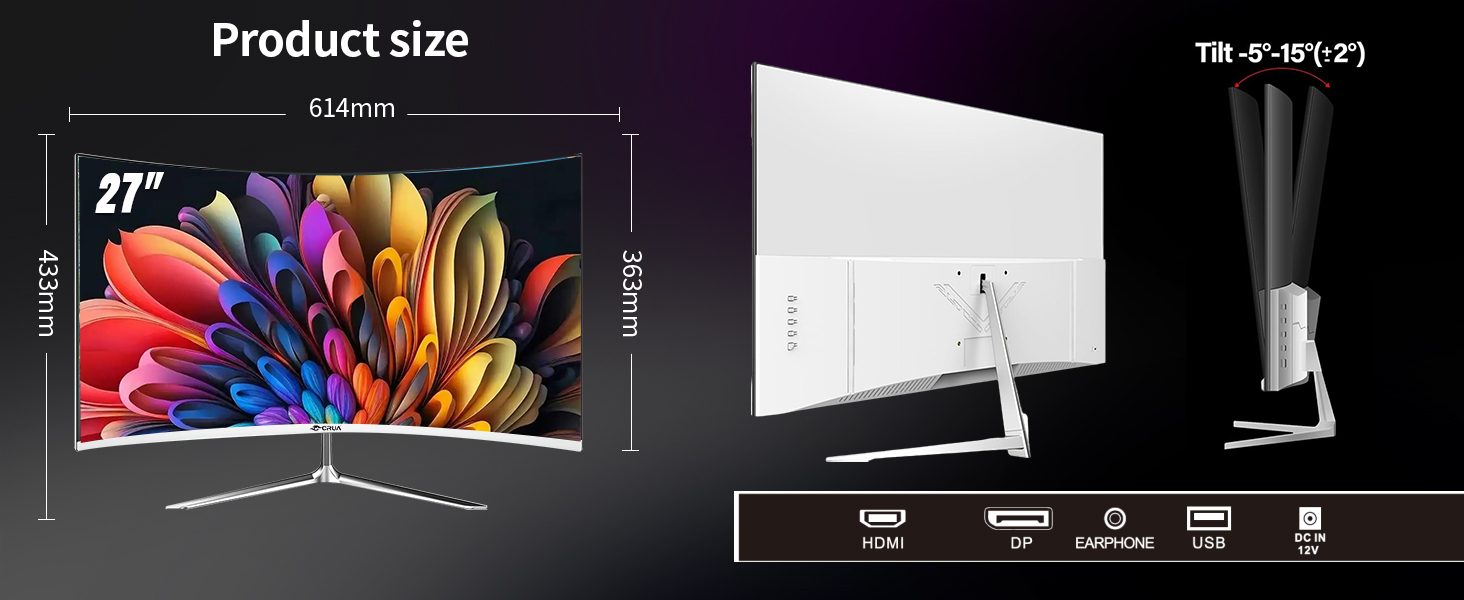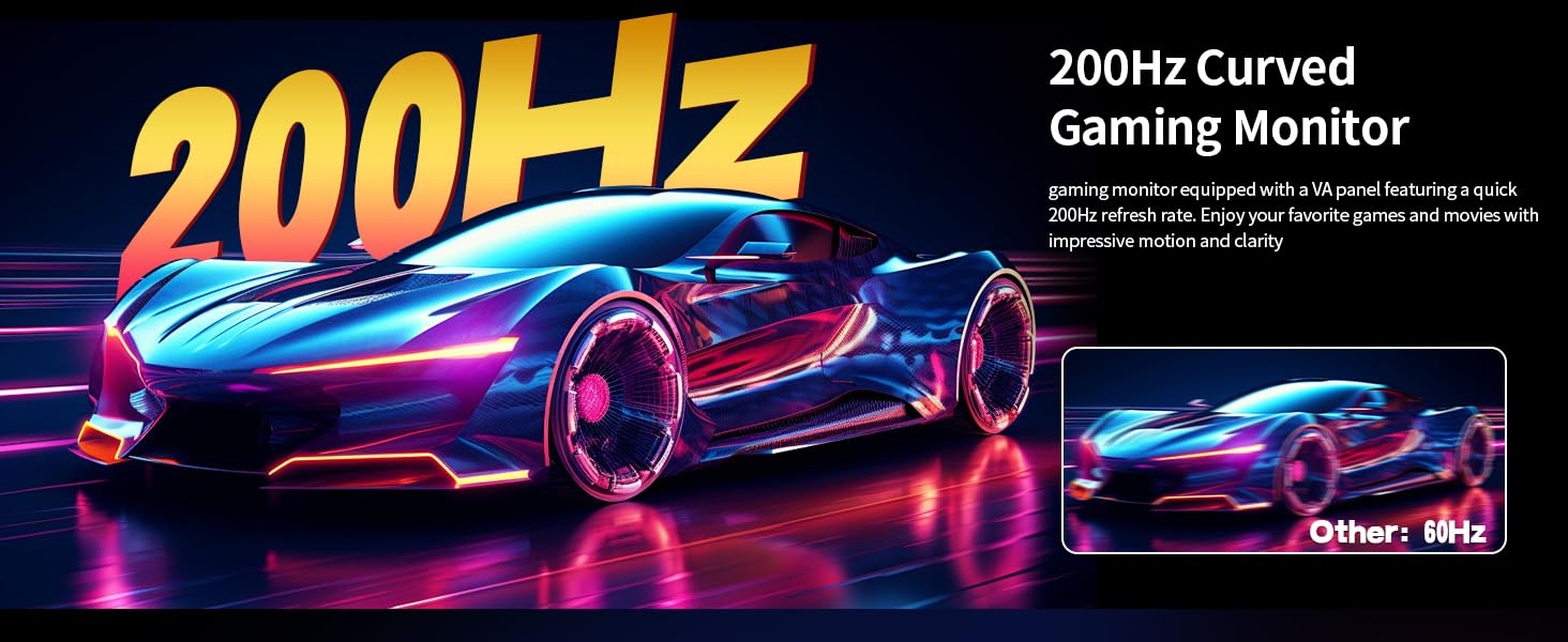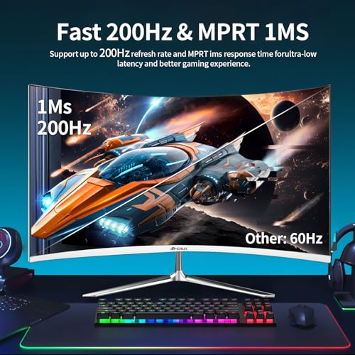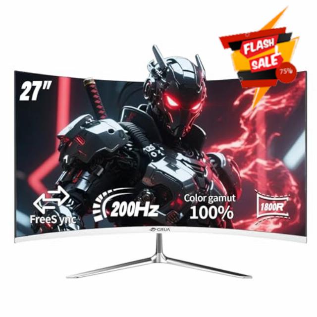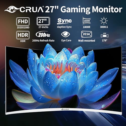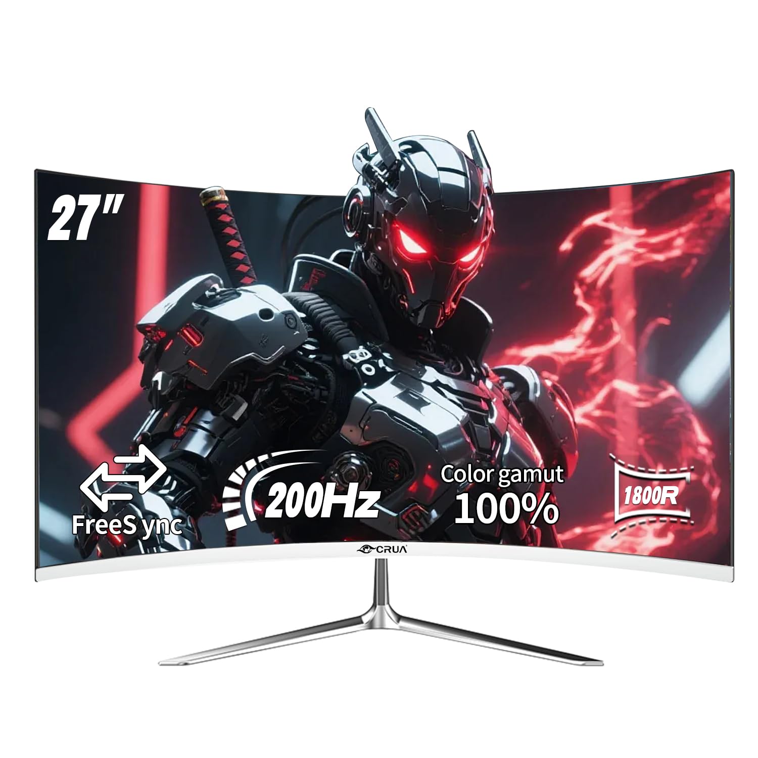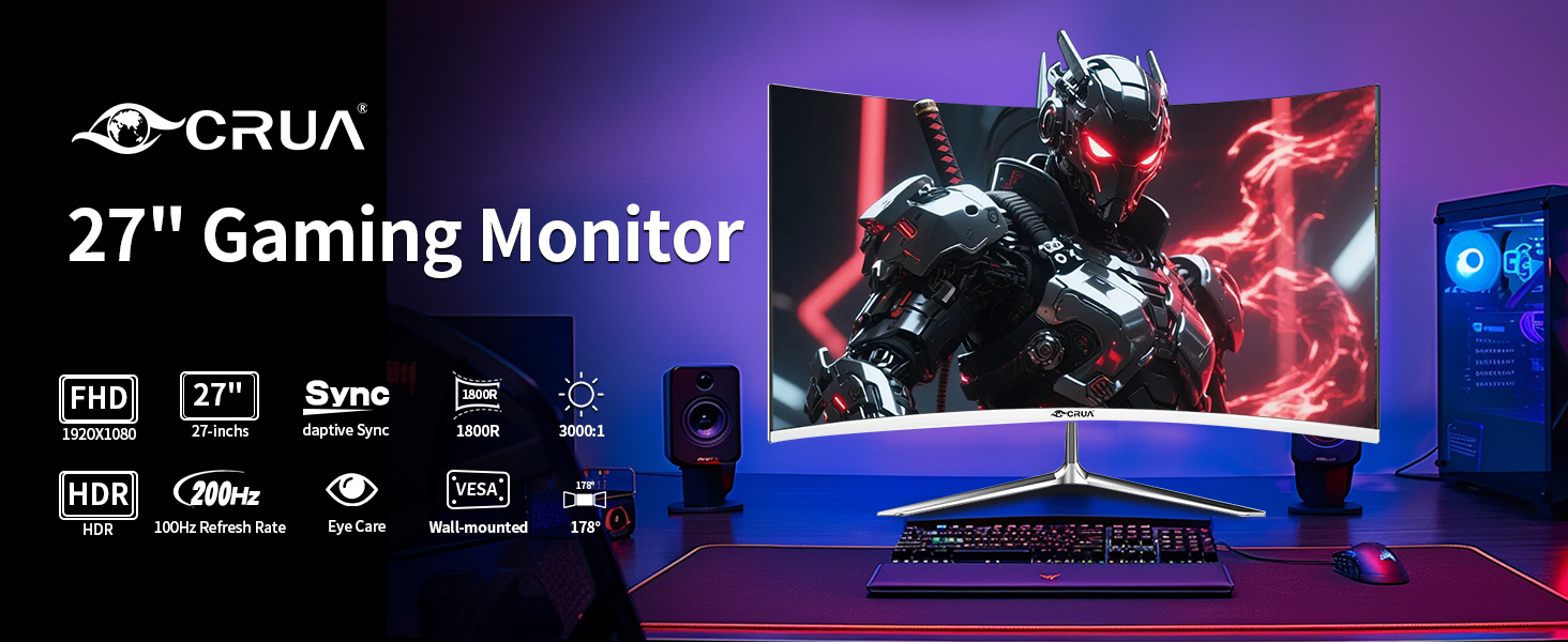 The CRUA 27-inch curved monitor delivers an ultra-smooth, immersive gaming experience with a lightning-fast refresh rate of up to 200Hz (also supports 180Hz/165Hz/144Hz). Featuring FreeSync technology, it effectively eliminates screen tearing and stuttering for seamless visuals, providing gamers with crisp, responsive action during gameplay.