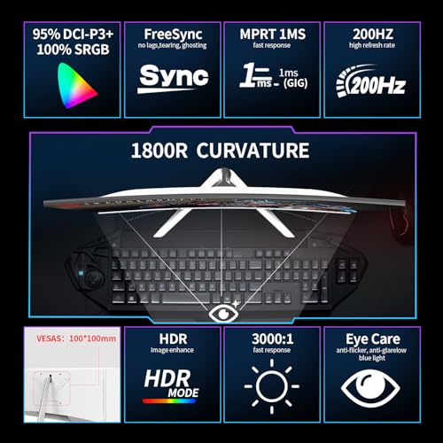 1800R Curvature for Maximum Comfort:Experience ultimate comfort and immersion with the 1800R curve, designed to enhance your field of view while reducing head movement. Perfect for marathon gaming sessions, the monitor's slim bezel and sturdy V-shaped stand offer both style and stability, while the tilt-adjustable stand (-5° to 15°) ensures you can find the most comfortable viewing angle.