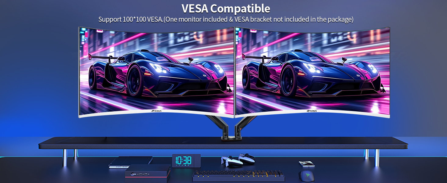 Versatile Connectivity for Any Setup:Equipped with HDMI 1.4 (up to 144Hz) and DisplayPort 1.2 (up to 200Hz), the CRUA monitor ensures compatibility with a wide range of devices, including gaming consoles, laptops, and home office setups. Its VESA-compatible mounting option (100mm x 100mm) provides flexibility for wall mounting, saving space and enhancing your workspace.
