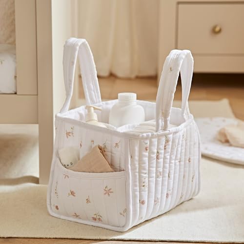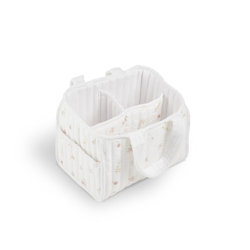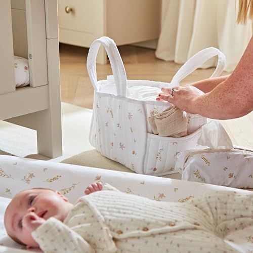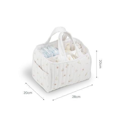 CuddleCo Nappy Caddy – Quilted Nappy Caddy Organiser with 3 Spacious Internal Compartments, Outer Pocket, Sturdy Handles, Machine Washable – Newborn Essentials for Parents (Cashmere Meadow)
