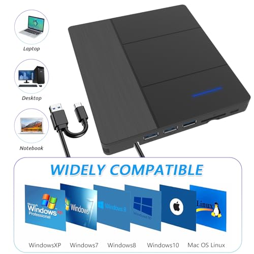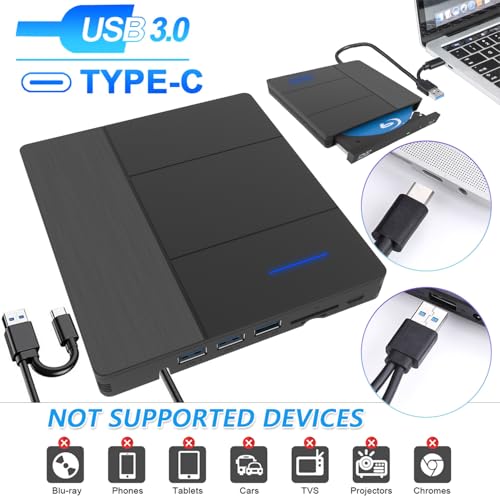 Custom Catch External Blu-ray Drive, BD Blu-Ray Drive Burner with USB 3.0 Type-C Portable Blu-ray Drive, Portable 3D CDDVD Burner, Optical Blu-ray Drive for Laptop PC Desktop Windows 10 11