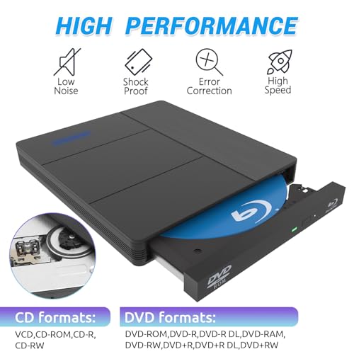【Wide Compatibility】 This USB 3.0 Blu-ray external drive is compatible with a wide range of laptop, desktop, and laptop operating systems, and is compatible with Windows XP/7/8/10/11 and all versions of Mac OS. It supports BD/DVD/CD/3D playback up to near 4K resolution. The Blu-ray player can play DVDs and CDs and is compatible with USB 2.0 and USB 3.0 ports. (Note: Blu-ray player won't play 4K Ultra HD discs)