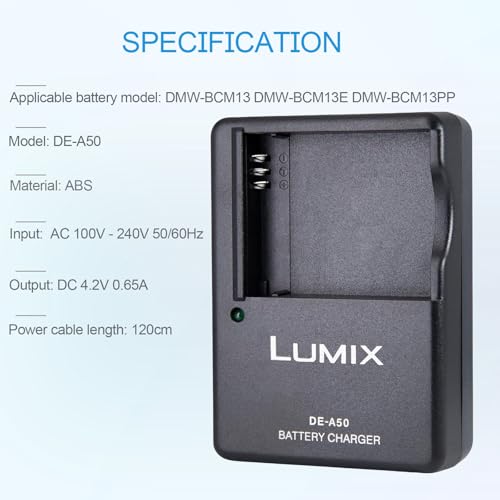 - DMW-BCM13PP Battery Charger 100% Safe Charging: Our DE-A50 replacement charger provides safe, fast and efficient charging of your camera. Our charger has overcharge protection, short circuit protection, high temperature protection and surge protection with CE, RoHS Certifications, tested by manufacturer to match OEM products, It's the perfect solution for all Canon camera enthusiasts, reliable and convenient!