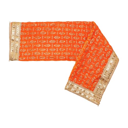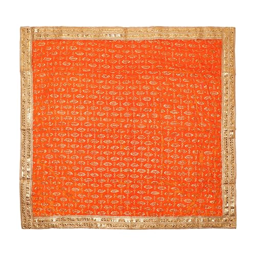 Decorative Mat Aasan Chunari Backdrop Pooja Cloth Chunni Indian Traditional Janmashtami Festival Decoration MATA Ki Chunri for Statue Chowki Aasan Mat Home Decor(Size:36 Inche x 36 Inche)(Orange)