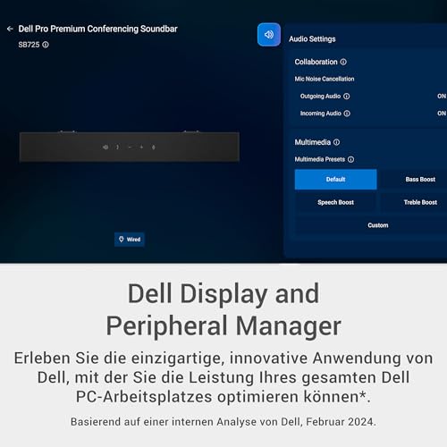 Dell Pro Premium Conferencing Soundbar SB725 – AI Noise Cancellation, Dual Microphones, Echo Cancellation, 40+ Dell Monitor Compatibility, MS Teams & Zoom Certified, USB