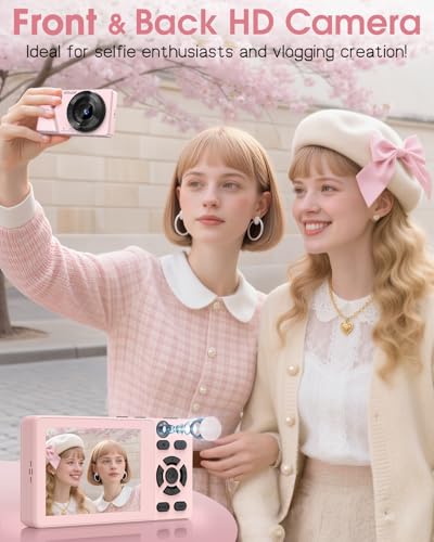 - Innovative Dual Lens Digital Camera: Featured dual lenses (front and rear) and an advanced CMOS sensor, this Compact Selfie Camera can capture stunning photos(64MP) and videos(4K), which is an ideal Selfie Camera or a fun Kids’ Camera for capturing creative angles. Whether you're a beginner or buying a gift for a child or teenager, this user-friendly camera is lightweight, portable, and simple to use.