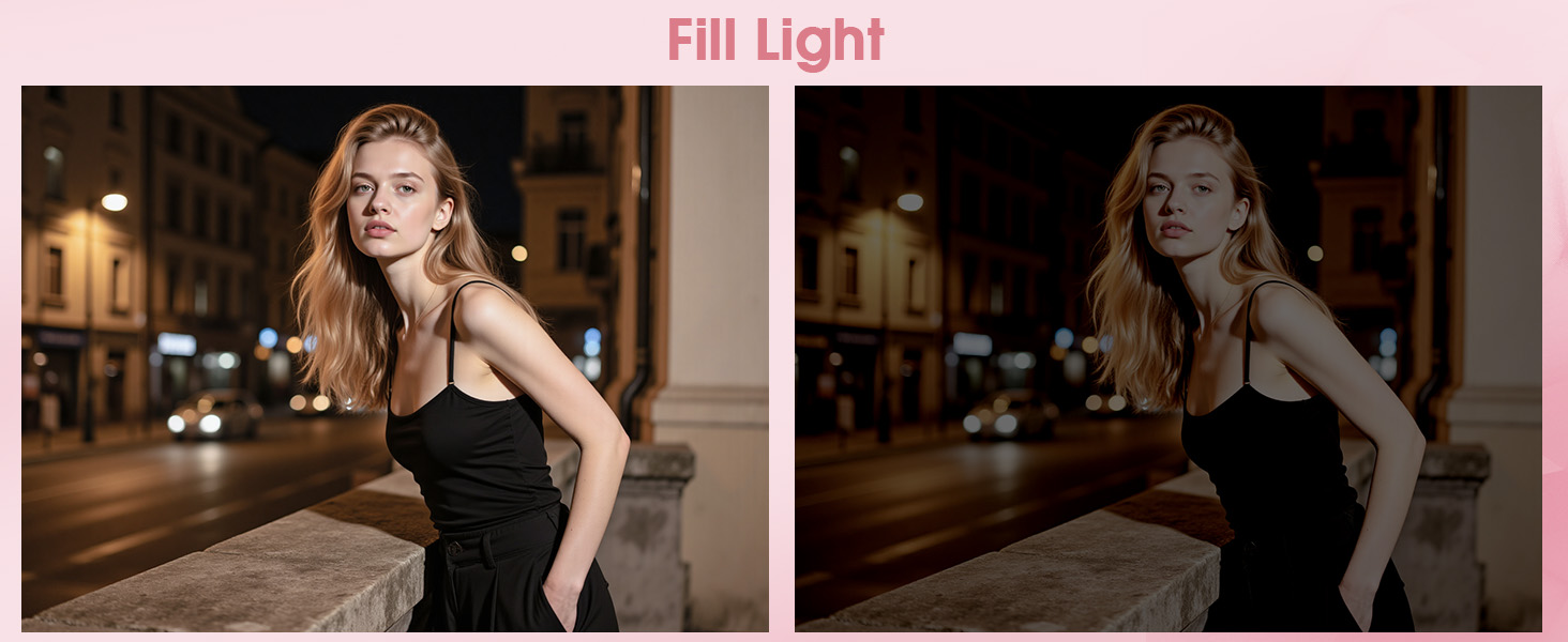 Fill Light: Short press "UP" button, there are 3 modes: auto follow, always on, always off; Set timer Delay: Short press "DOWN" button, supports 3s/5s/10s/20s timed shooting, making it easy to take selfies