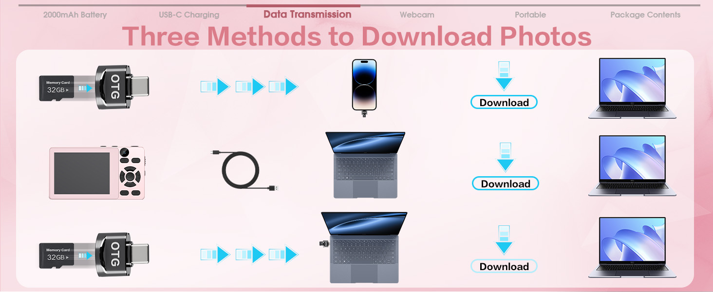 Connect the USB-C cable to the PC, the camera selects "Mass Storage Mode", find the folder "No Name" on the PC desktop;Or take out the SD card and insert it into the OTG, connect to the PC and find the folder "No Name" on the desktop of your PC
