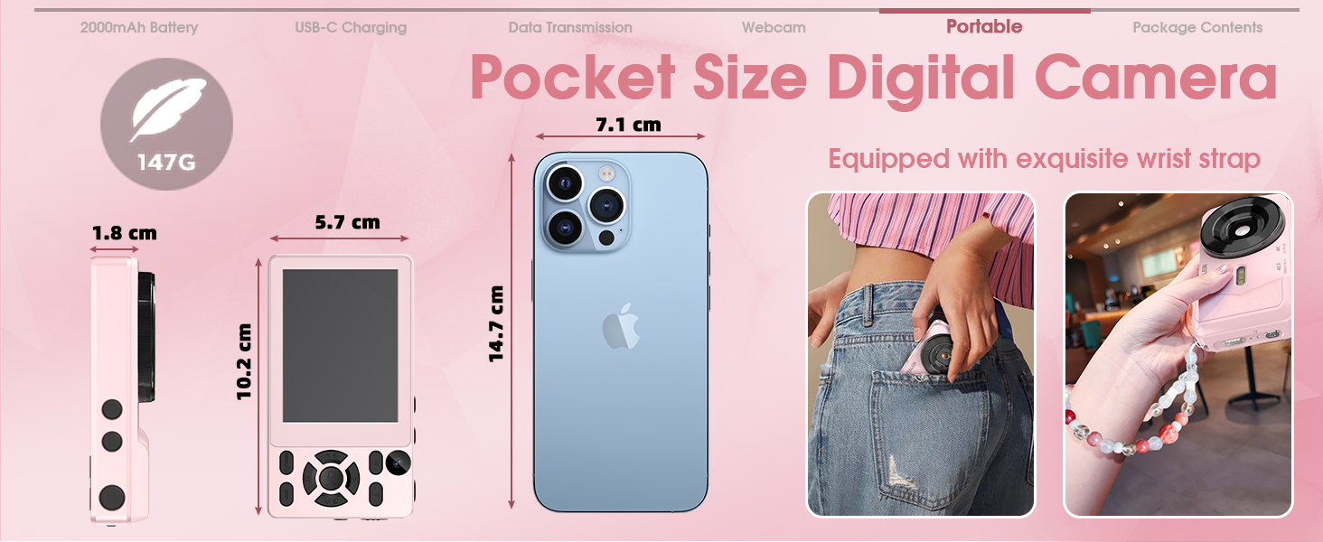 - Pocket-Sized & Versatile Camera: Weight – 147g and Size – 10.2 x 5.7 x 1.8cm, this Vintage Camera is perfect for on-the-go shooting. This Kids Digital Camera is equipped with 18X digital zoom, 20 filters, auto-focus, fill light, self-timer, auto shooting, timed shooting, continuous shooting, date stamp, time-lapse recording, loop recording, smile capture and beauty face etc. Perfect Retro Digital Camera for your family and friends.