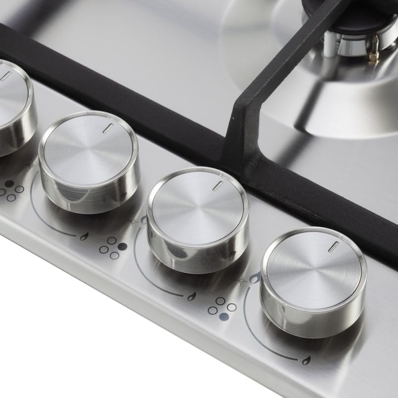 DNSL 460X Integrated 4 Burner Gas Hob, Stainless Steel, Built-In Kitchen Hob, Rotary Controls, Flame Failure Safety Device, Cast Iron Pan Supports, Energy Rated