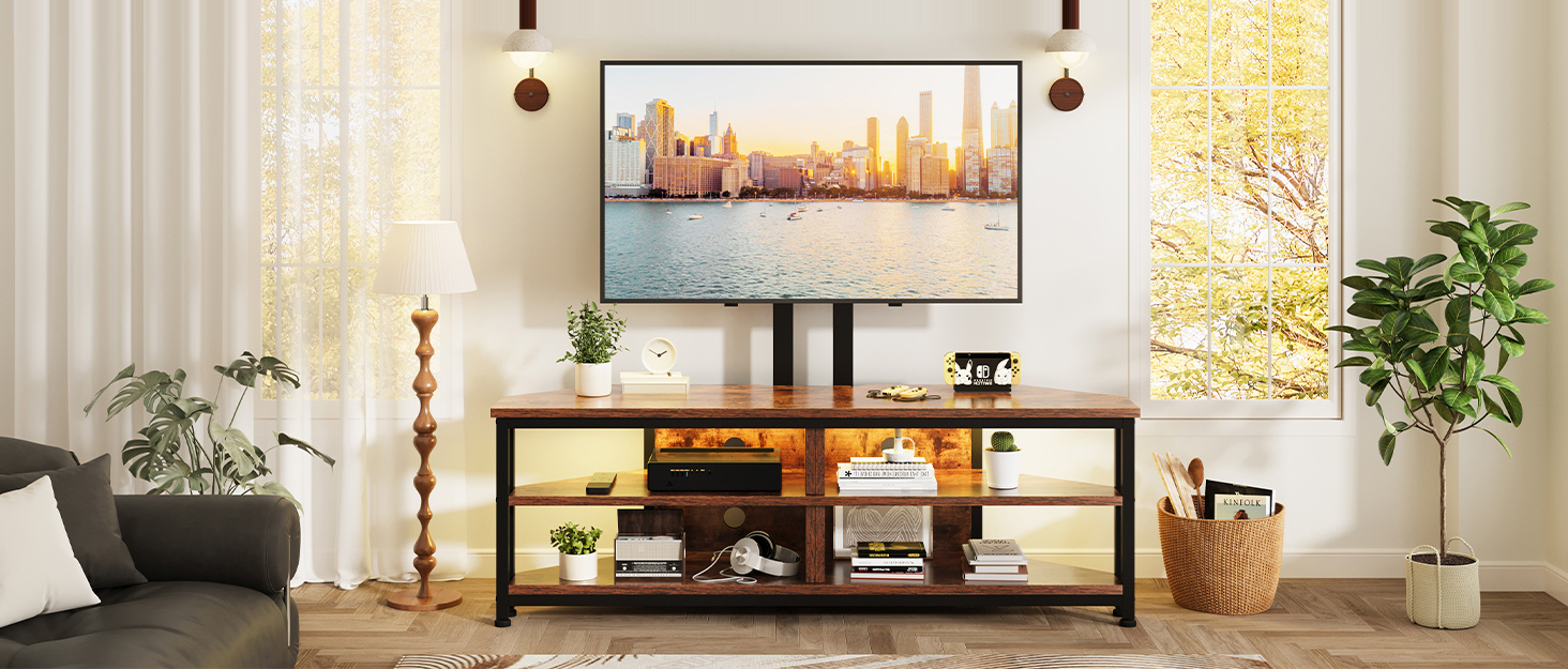 - Adjustable Height: The TV mounting bracket is height adjustable ensures your screen is always at the perfect angle for comfortable viewing.