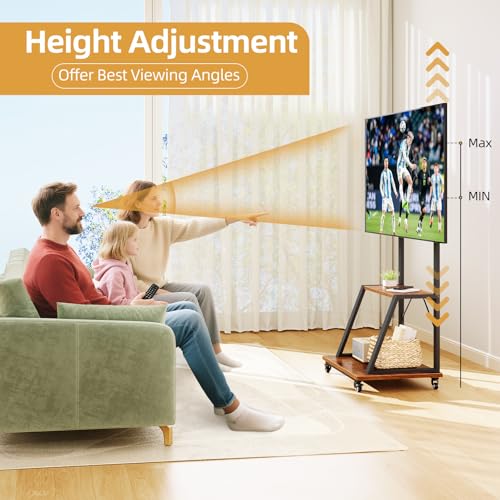 Dripex Mobile TV Stand on Wheels for 32-70 Inch TVs, Adjustable Height TV Cart with Bracket Mount max VESA 600x500mm max 80kgs with 2 Tier Storage Shelves for Bedroom, Living Room, Home Gym
