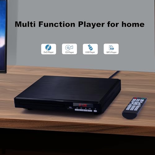 DVD Player for tv,1080P HD DVD Player for home All Region Free Compact Mini CD Player with USB 2.0 Port Remote Control HDMI&AVI Cable,Built-in PAL/NTSC System(Not for Bluray)