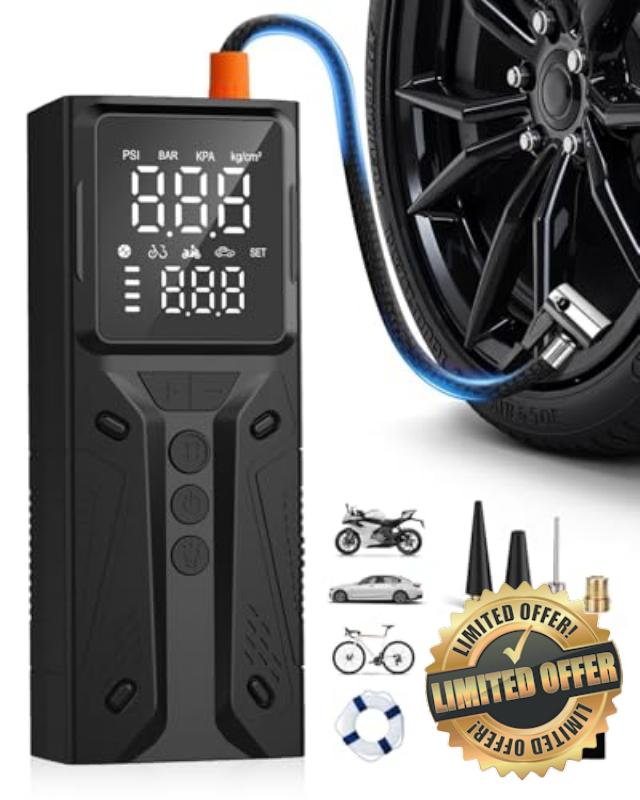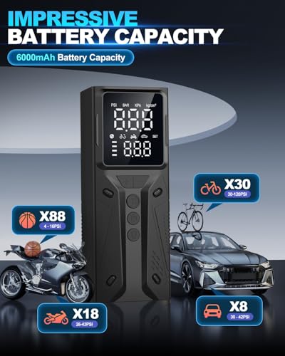Durable 6000mAh Battery– Equipped with a high-capacity rechargeable battery, this air compressor tyre inflator ensures reliable performance the need for constant recharging, making it ideal for roadside emergencies and regular maintenance.