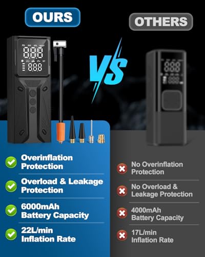 E-SMARTER Tyre Inflator Air Compressor, 6000mAh 150 PSI Bike Pump with Overinflate Protection, Fast Inflation Portable Tyre Inflator for Car LCD Display, Air Pump for Tyres and Other Inflatables