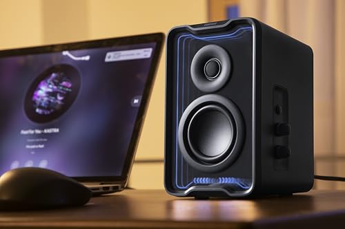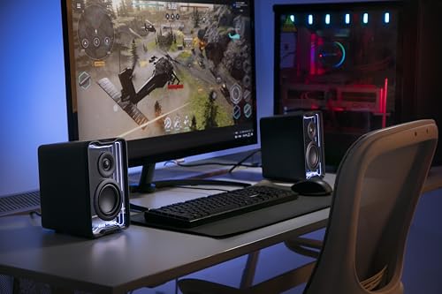 - 2.75" MID-BASS & 0.75" SILK DOME DRIVERS: Long-throw woofer and silk-dome tweeter combo produce deep bass, clear mids, and smooth treble in a compact desktop form