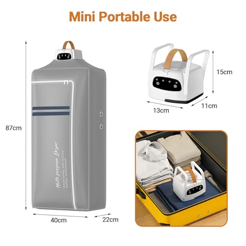 【Compact and Portable】The portable dryer measures 15 x 13 x 11 cm, making it compact and easy to carry. The foldable garment cover can be easily packed into a suitcase, providing a convenient solution for drying clothes during travel or seasonal changes. Note: This product does not include a clothes hanger.