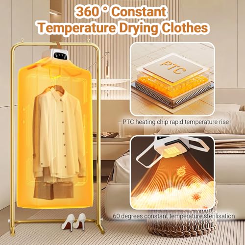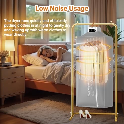 【Noise-Free Drying】The portable dryer operates quietly and efficiently, creating a peaceful home environment. Place clothes inside at night for gentle drying, and wake up to soft, warm clothes ready to wear. It is an ideal solution for apartments, RVs, families, campers, and small apartments.