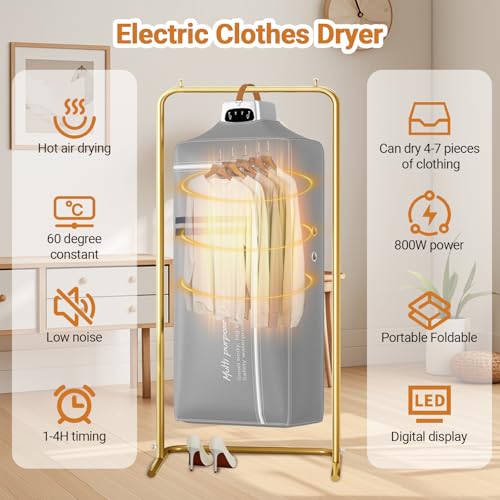 Electric Clothes Dryer, 800W Portable Clothes Dryer with Drying Bag, Wet Laundry Fast Drying, 360° Dimensional Drying with 4H Timer, Foldable Laundry Drying for Home, Apartment, Travel [Energy Class A]