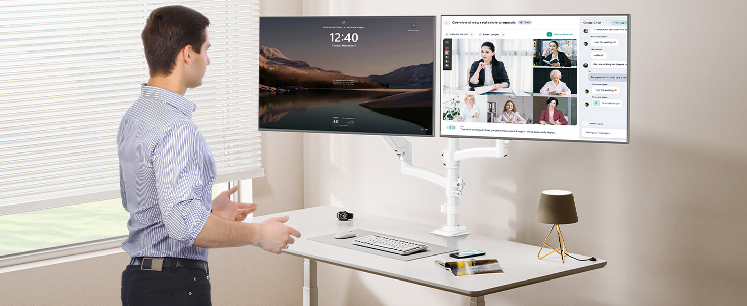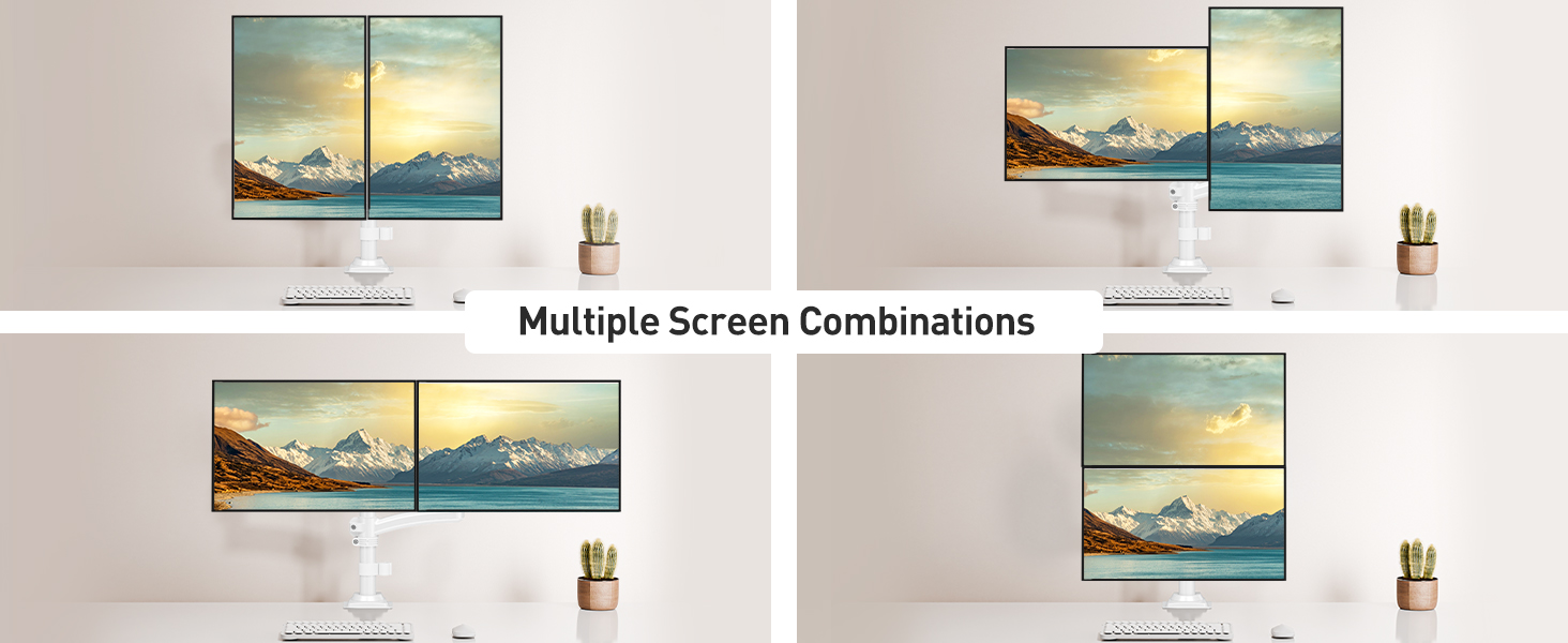 - Smart Space-Saving: Features versatile positioning – arrange monitors horizontally side-by-side or vertically stacked. Integrated cable management keeps your workspace tidy while clearing valuable desktop space.