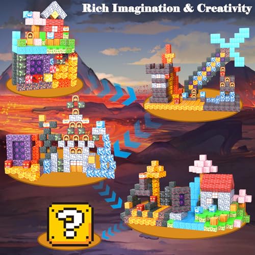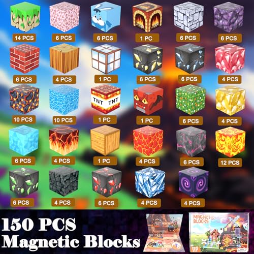 - Build Your Own 3D World:150 PCS Magnetic blocks with 29 unique elements, uses advanced printing technology, resulting in vibrant colors and clear patterns. Spark the imagination of children with themes of lava, portal and forest, they can construct immersive worlds and create their own thrilling narratives. Let their imaginations run free with our magnetic block toy set!