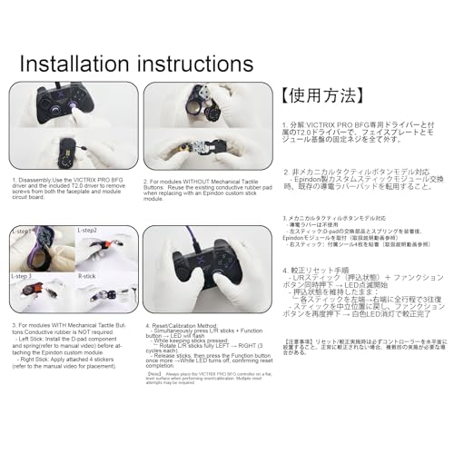- 【Note】: 1).Always place the VICTRIX PRO BFG controller on a flat, level surface when performing reset/calibration. Multiple reset attempts may be required. 2). our stick modules is tested and 1 month warranty;If any questions or concerns , Please contact: [email protected].
