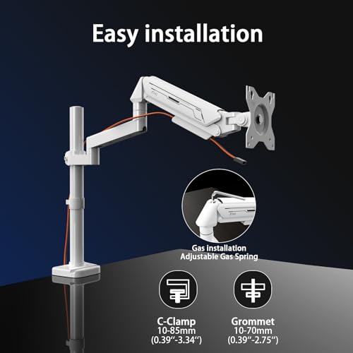 - 【Ergonomic Design for Immediate Use】 Get started quickly with this user-friendly gas spring monitor arm, which includes all components for immediate setup. Enjoy tool-free installation and intuitive one-handed adjustments for an effortlessly adaptable and ergonomic computing experience.