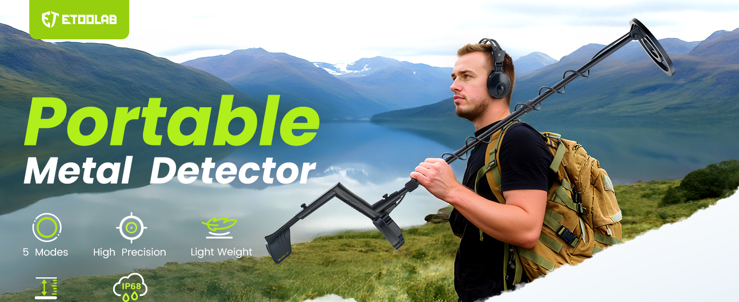 ETOOLAB Metal Detector, Professional Metal Detectors for Adults & Kids, 5 Modes, IP68 Waterproof, Complete with Headphones, Collapsible Shovel, Batteries and Backpack