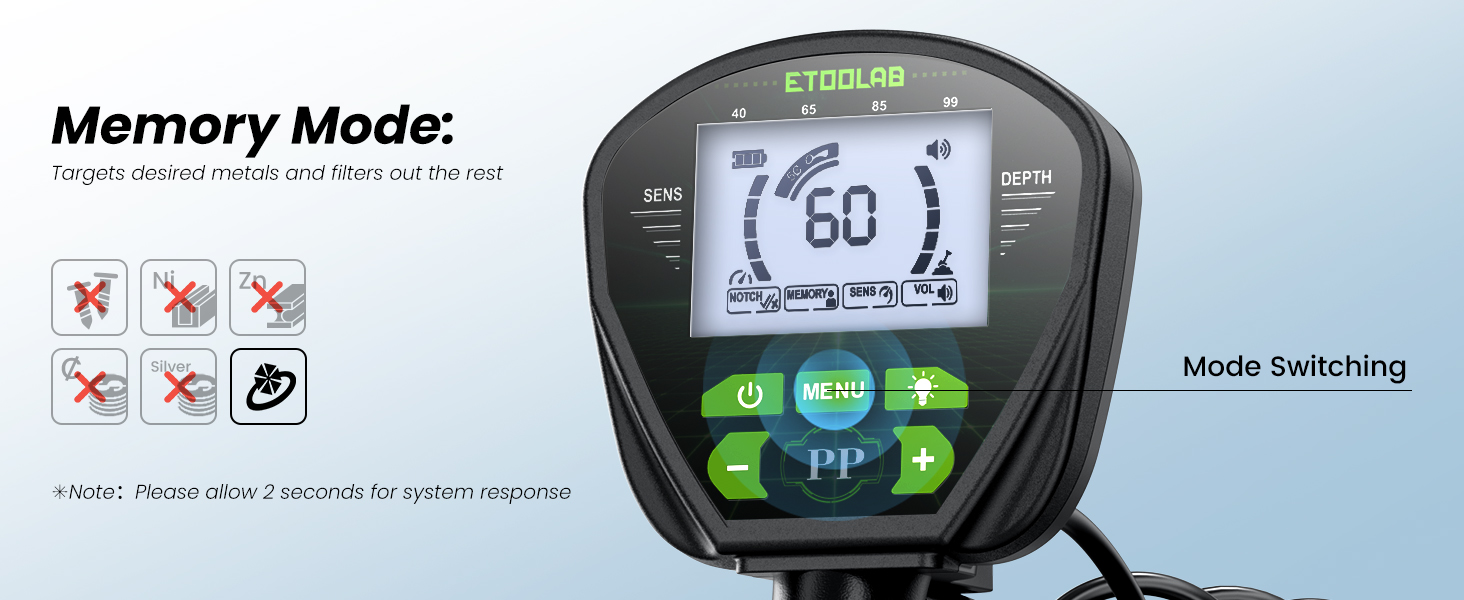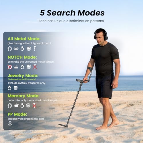 【5 Professional Modes with Pinpoint Accuracy】Features five smart detection modes with enhanced detection accuracy, precisely identifying various metal types while effortlessly distinguishing valuables from common metals. Helps quickly locate hidden treasures with 50% higher search efficiency and pinpoint precision.