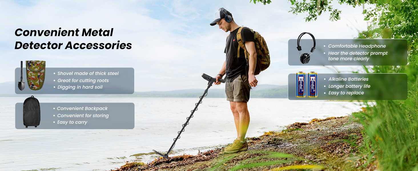 【Complete Adventure Kit】Includes professional backpack, collapsible shovel, headphones, and battery set – ready to use right out of the box. Ergonomically lightweight design with 3-minute quick assembly makes outdoor adventures effortless(The main metal detector unit weighs 1.0 kg, and the packaging weighs 2.4 kg).