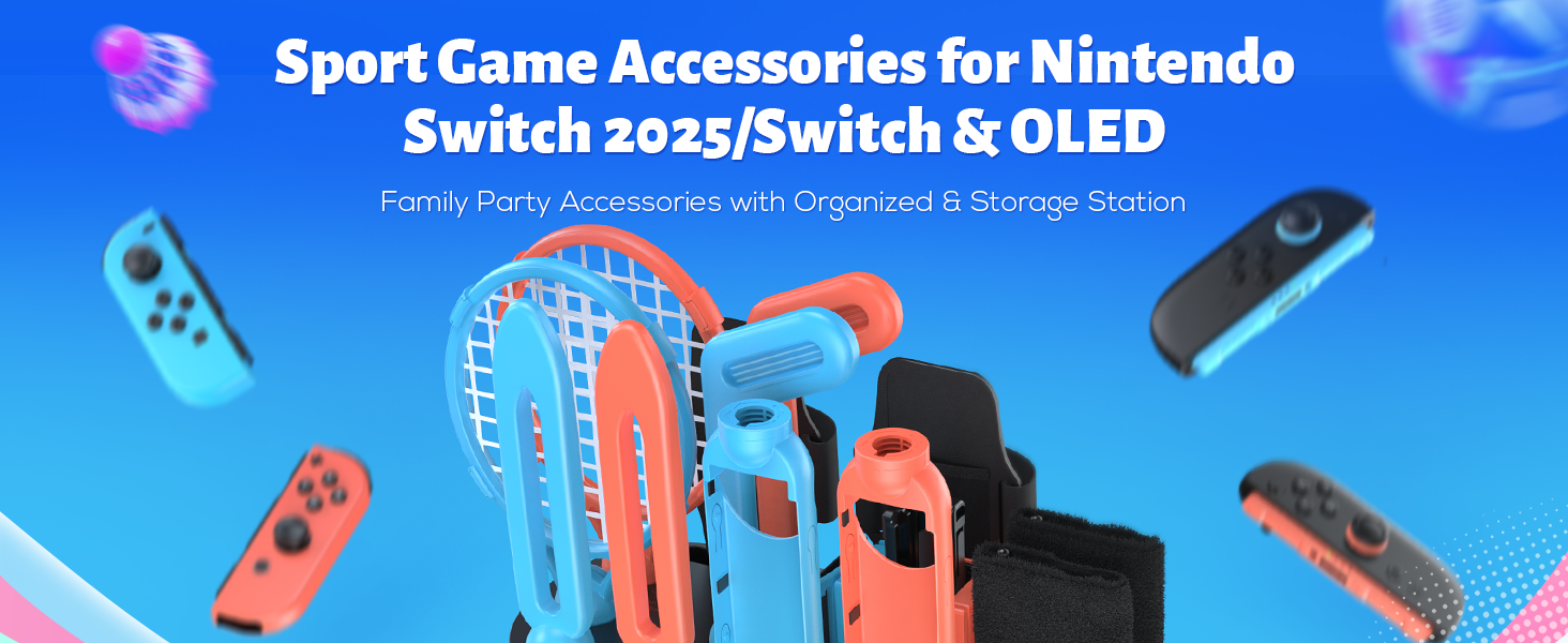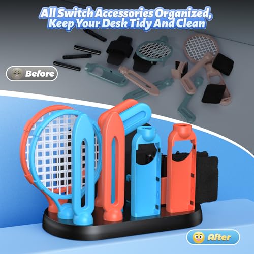 FASTSNAIL Sports Game Accessories Bundle Compatible with Nintendo Switch & for Joycon 2, Family Party Accessories Pack with Organized & Storage Station for Switch Sports Games