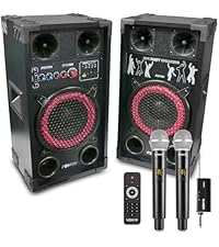 - Complete karaoke speaker system designed for unforgettable home entertainment, with 1200W maximum output and a speaker pair with dual 10-inch woofers, delivering powerful sound and vibrant audio clarity at parties.