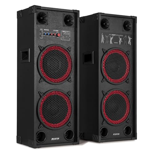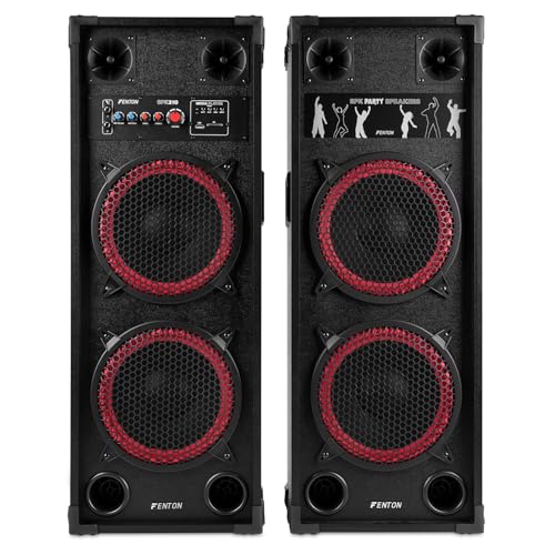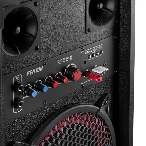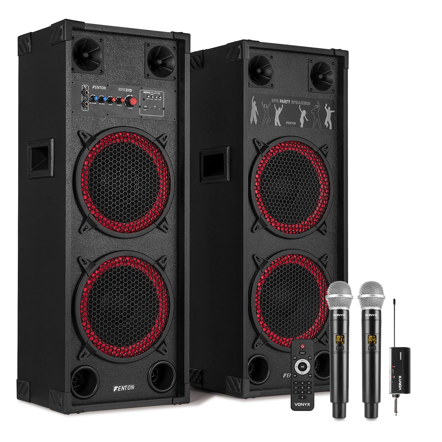 Fenton SPK-210 Bluetooth Karaoke Speaker System – 1200W Party Speaker Set with Dual 10″ Woofers, Wireless Microphones, Echo Control, USB/SD Media Playback – Portable Karaoke Machine for Adults