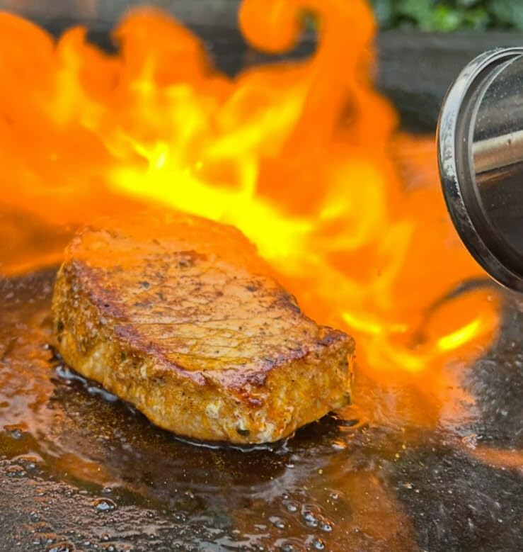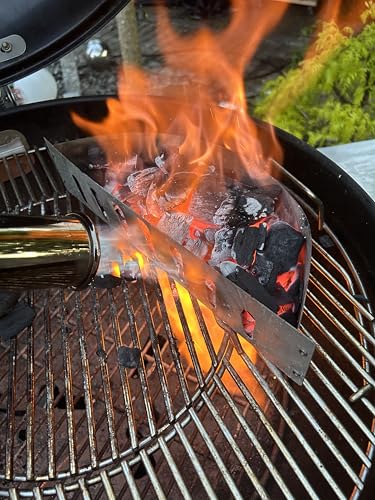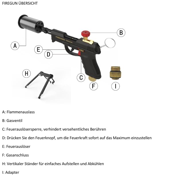 Experience grilling at a professional level with our premium BBQ burner with piezo ignition – the ideal helper for all grill masters and outdoor chefs. With an impressive maximum temperature of up to 1,100 °C, the barbecue torch ensures perfect crusts on steaks and versatile uses in the kitchen and outdoor area. Whether it’s flambéing, steaking, roasting peppers or lighting charcoal, this powerful torch is the first choice for ambitious barbecue fans. The practical piezo ignition allows easy and safe starting at the touch of a button. The ergonomic design with sturdy one-handed grip guarantees precise work. Thanks to the heat-resistant housing and compact design, the steak burner is particularly durable – ideal for garden, camping, kitchen or workshop. Included are a sturdy tripod for a secure stand and an adapter for propane gas bottles. So you are ready to use. Compatible with universal gas cartridges with 7/16″ screw thread. ️ Note: It is a powerful burner with large flame. Please always use responsibly and with caution.